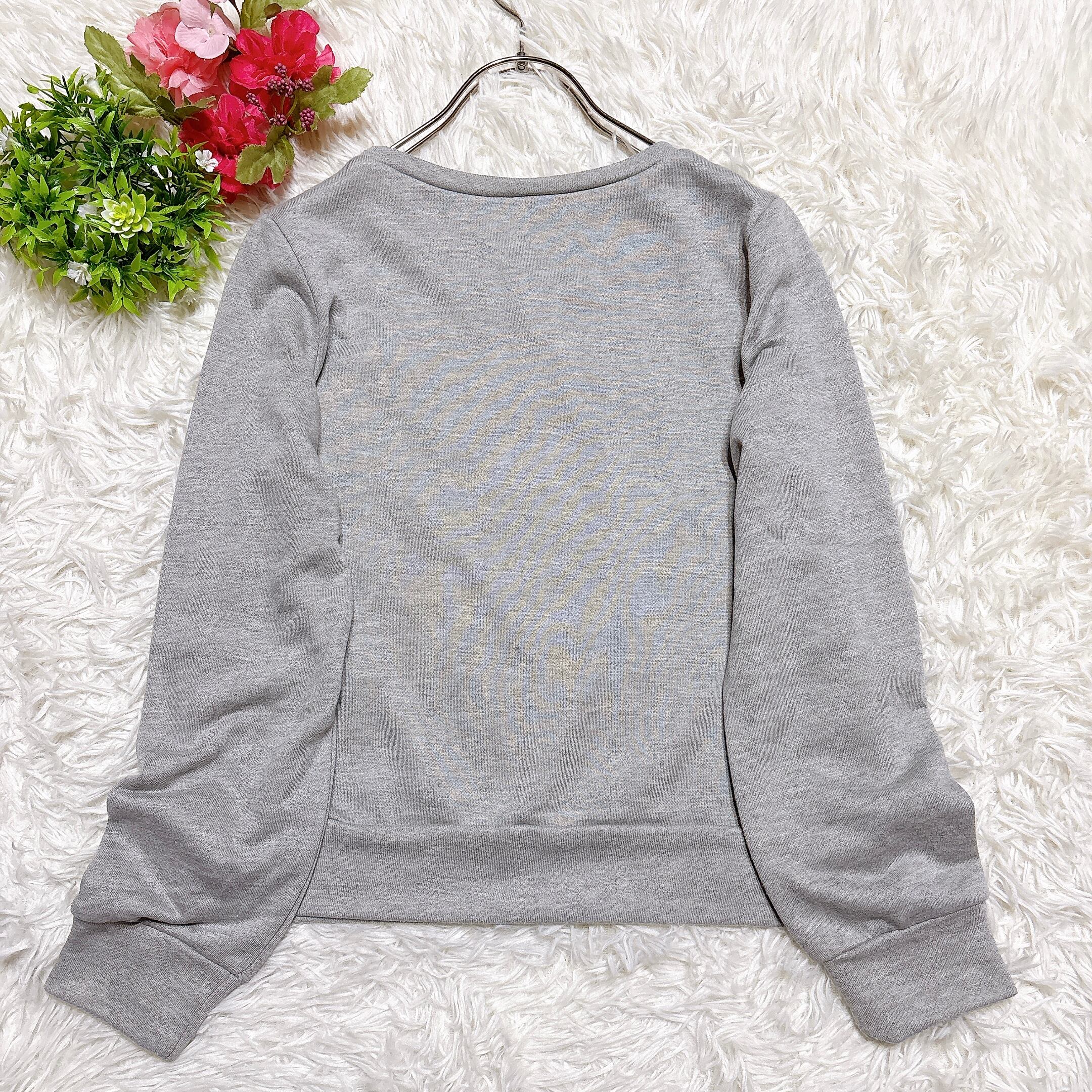 【エディットコロン】長袖トップス(3)グレー×ホワイト レーヨン混 花柄レース