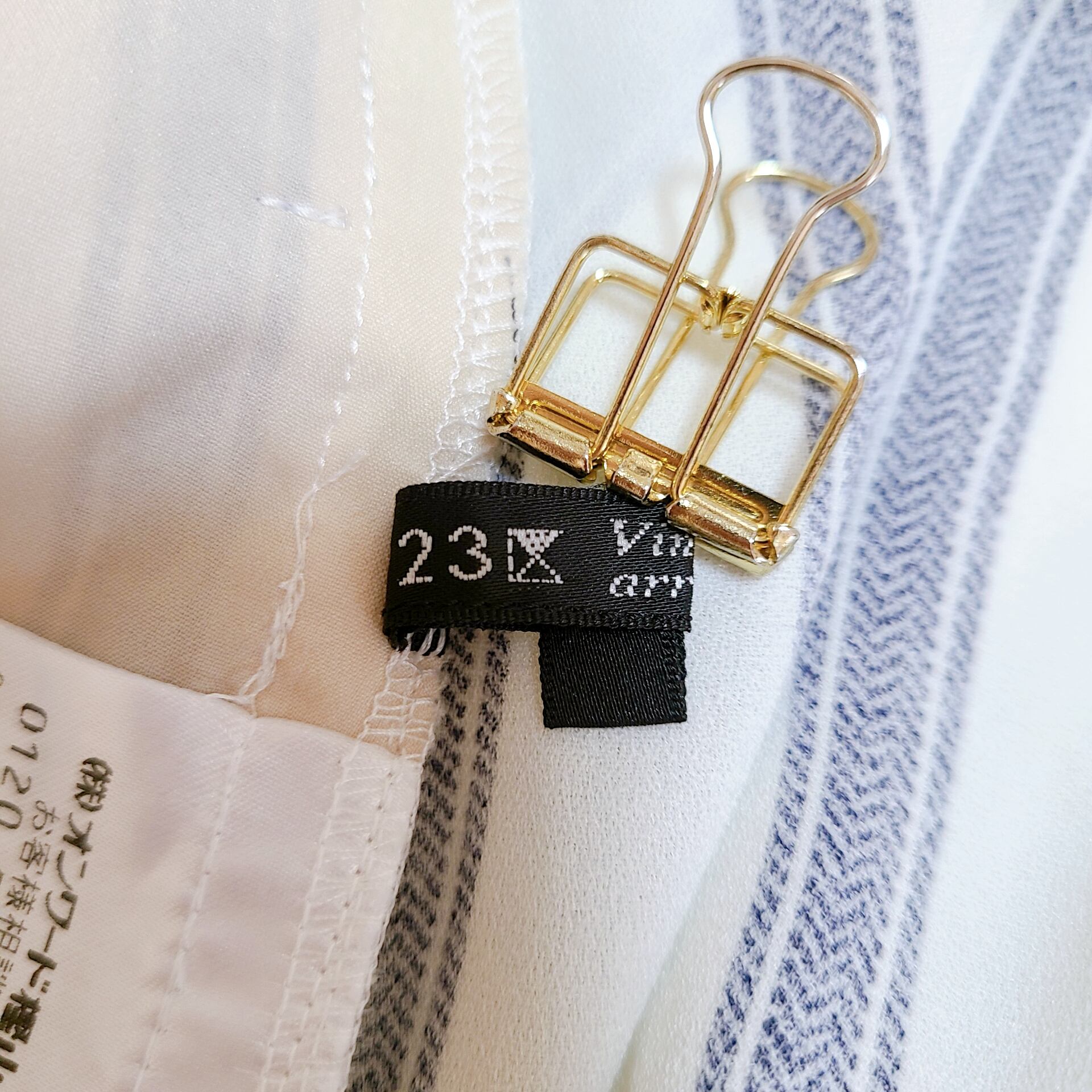【23区】 パンツ (32) ホワイト×ネイビー ストライプ 薄手 リボン