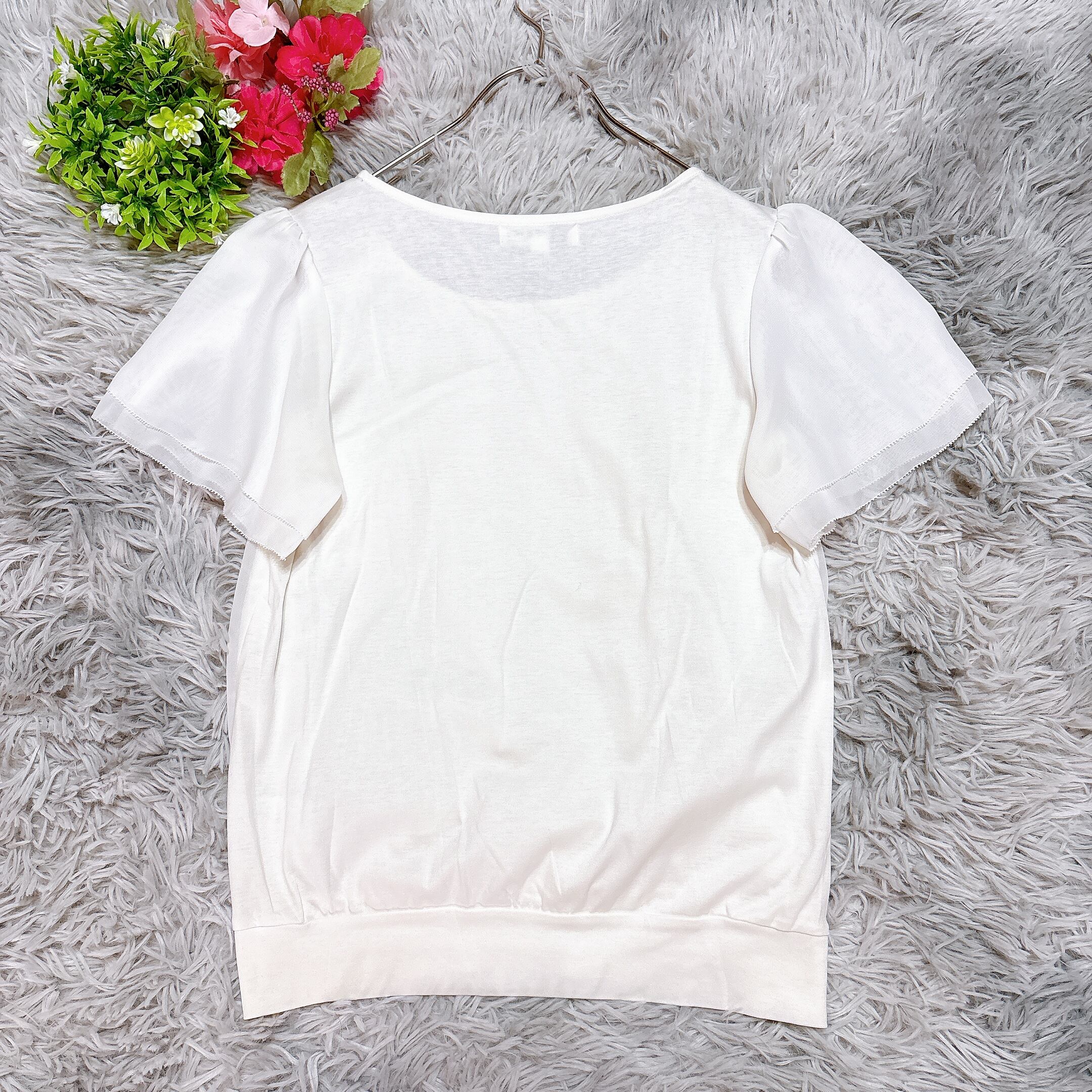 【ミッシェルクラン】半袖トップス(38)ホワイト ミドル丈 コットン100%